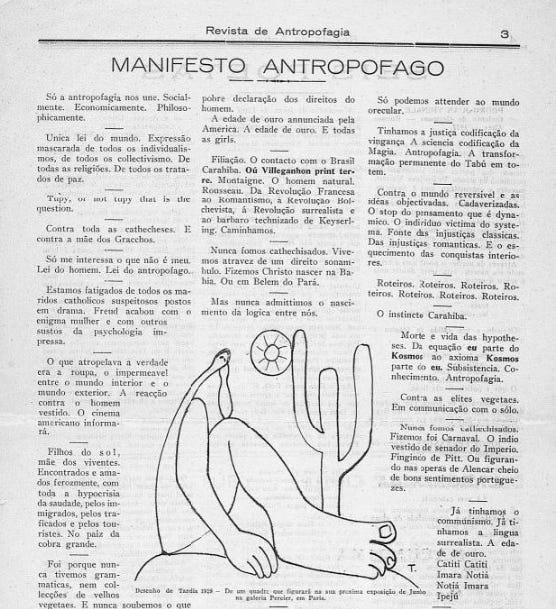 The Tropicália artists of the 1960s didn’t treat Oswald de Andrade’s Manifesto Antropófago (1928) as just some museum piece. They used it like a tool. Andrade’s point was simple and strange enough to work: Brazil’s real strength is its ability to swallow foreign influence and turn it into something new. “Cannibalism,” for him, wasn’t violence at all but a kind of cultural metabolism. Caetano Veloso, Gilberto Gil, Hélio Oiticica and the rest followed this line of thinking without much ceremony. They took in European forms, chewed through them, and handed back something that didn’t resemble the original source. Consuming the dominant culture wasn’t imitation; it was the quickest route to undoing it. In their hands, cannibalism becomes less a metaphor and more a practice—a way of working with the world by taking it apart from the inside.